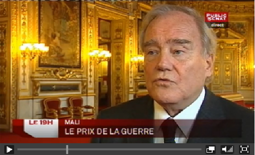 19 janvier 2013 Christian Cambon Mali : le prix de la guerre Christian Cambon a été interviewé sur les conséquences financières de l’intervention militaire de la France au Mali au JT de 19h de Public Sénat. http://videos.publicsenat.fr/vodiFrame.php?idE=127662 Partager :Partager Envoyer un lien par e-mail à un ami(ouvre dans une nouvelle fenêtre) E-mail J’aime chargement… Sur le même thème