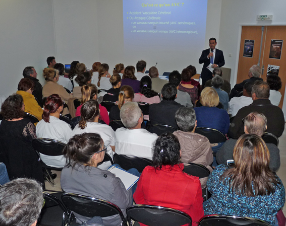 Dans le hall de l’hôpital, les services de neurologie, neuroradiologie, de médecine physique et de réadaptation, de diététique, du Samu et des Sapeurs pompiers ont organisé des ateliers et mis en place des stands d’information ainsi qu’une conférence animée par le Professeur Hassan Hosseini (responsable de l’unité neuro-vasculaire) pour sensibiliser le public à réagir efficacement lors des premiers symptômes de l’AVC.