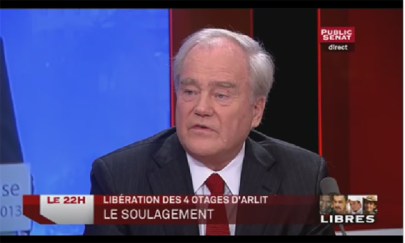 Le 22h de Public Sénat revient sur la libération des 4 otages au Niger. Sur le plateau, la journaliste Sonia Mabrouk reçoit Christian Cambon vice-président de la commission des Affaires étrangères, de la Défense et des forces armées, André Vallini, Sénateur (PS) de l’Isère, membre de la commission des Affaires étrangères , et le grand reporter au Figaro, Renaud Girard.