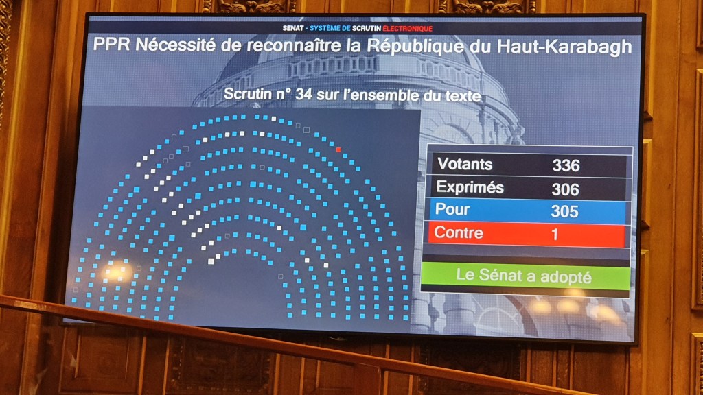 Immense succès de la Résolution du Sénat visant à reconnaître la République du Haut-Karabagh. La France a toujours su être à la hauteur de ses exigences et de ses valeurs. Christian Cambon a souhaité remercier Bruno Retailleau et tous les Groupes politiques du Sénat qui ont su dépasser leurs différences pour s’unir autour de cette cause juste. Aujourd’hui, le Sénat est la voix de la France.
