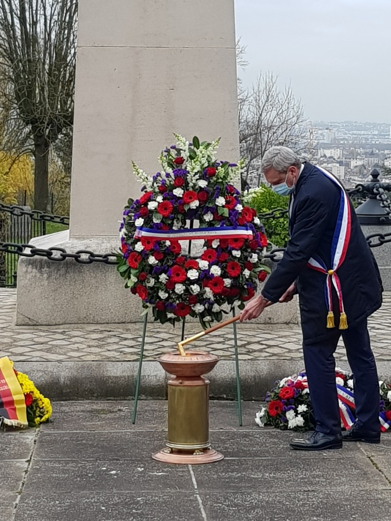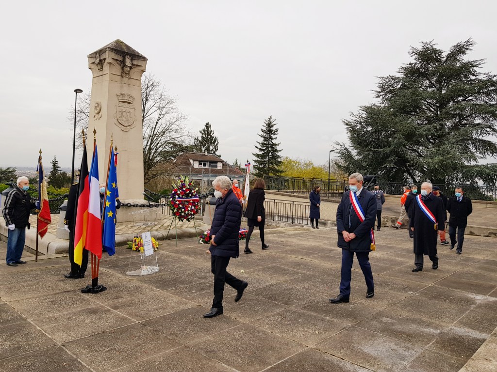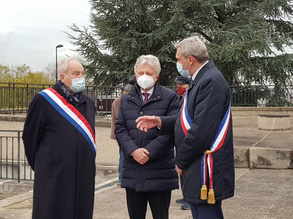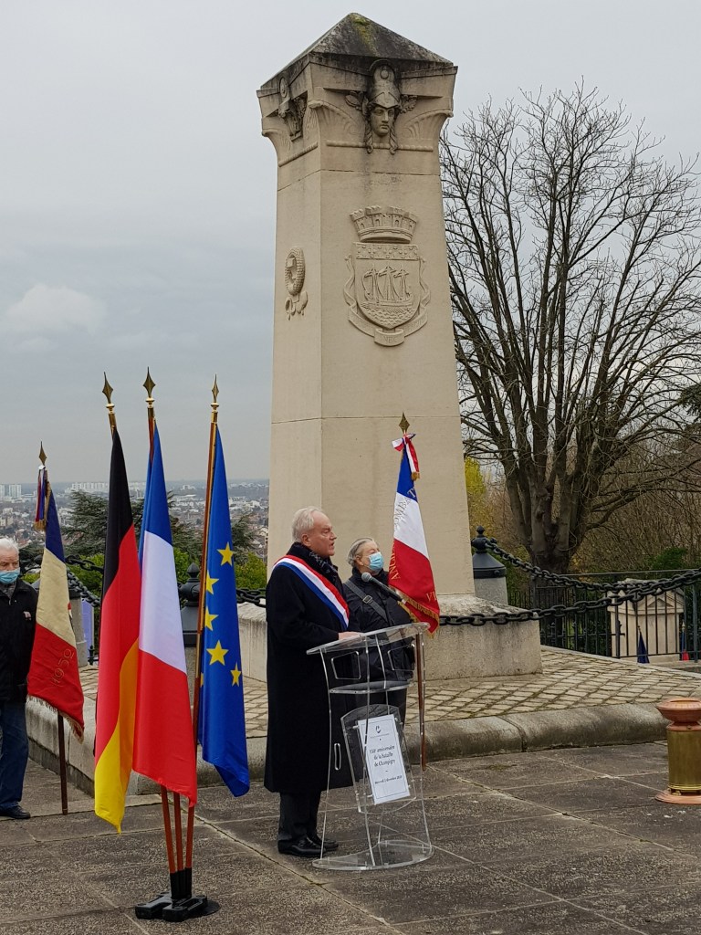 Au côté du maire de Champigny-sur-Marne, Laurent Jeanne et de l’ambassadeur d’Allemagne S.E. M. Hans-Dieter Lucas, pour la célébration du 150e anniversaire de la bataille de Champigny lors de la guerre de 1870 dans le seul mausolée où reposent ensemble soldats français et Prussiens.