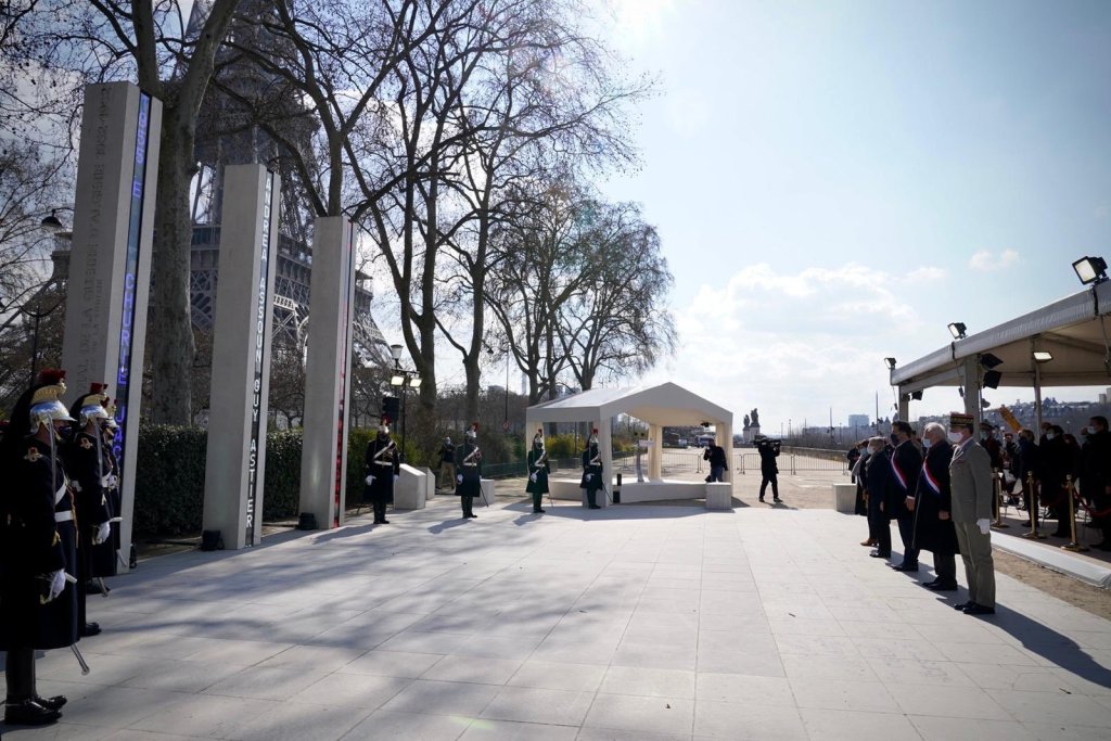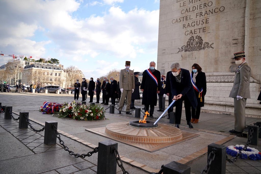Cérémonie nationale d’hommage aux victimes civiles et militaires de la guerre d’Algérie et des combats du Maroc et de la Tunisie et ravivage de la flamme sous l’Arc de Triomphe aux côtés de la Ministre déléguée auprès de la ministre des Armées.