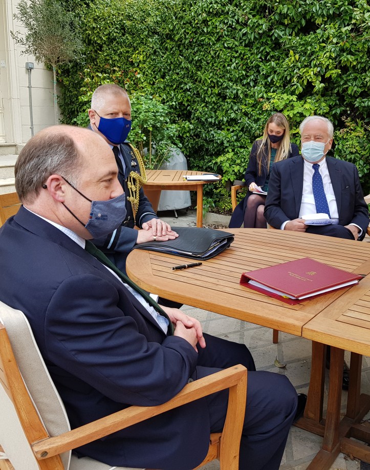 « Passionnant rendez-vous avec the Rt Hon Ben Wallace, ministre de la Défense de Grande-Bretagne à l’Ambassade à Paris. Après le Brexit, il est nécessaire de refonder une politique franco-britannique commune de sécurité et de Défense. Nous sommes les 2 seuls en Europe à détenir l’arme nucléaire. Nous avons des forces Armées aux capacités complémentaires et nos analyses sur la situation du monde sont très proches.Tournons ensemble la page du Brexit ! » a expliqué Christian Cambon.
