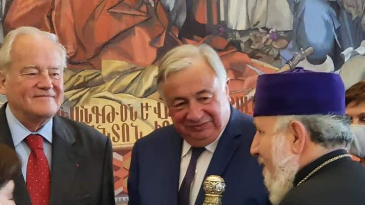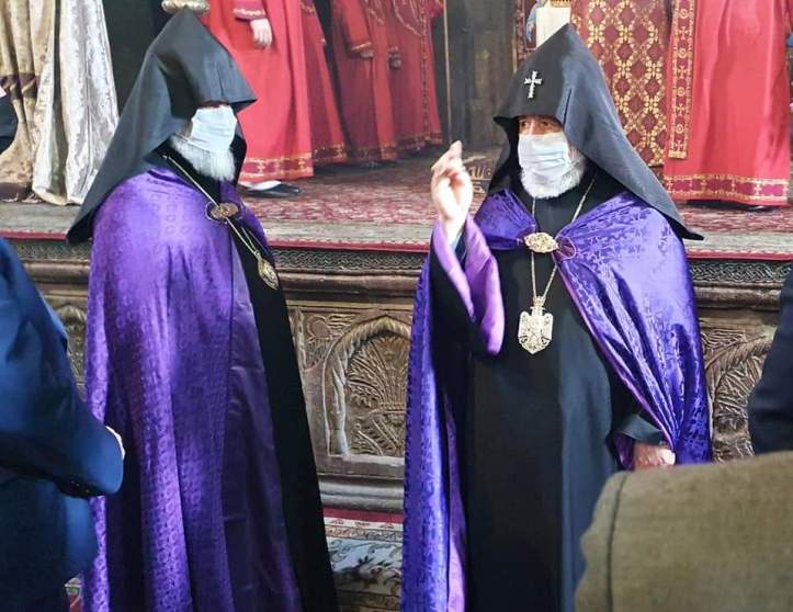 Audience exceptionnelle au Saint Siège Arménien d’Etchmiadzin auprès de S.S.Karekin II, suivie d’une messe. Retrouver la paix, faire revenir les prisonniers injustement détenus en Azerbaïdjan malgré le cessez le feu, sauver le patrimoine religieux systématiquement détruit, faire confiance en la France pour protéger l’Arménie, des sujets passionnants, partagés avec le Patriarche.