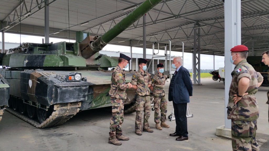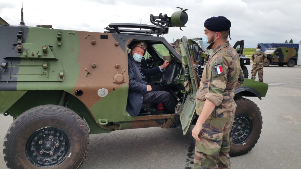 En Estonie, visite à la base de Tara (100 km de la frontière russe) au détachement du 12e Régiment de cuirassiers, qui participe à l’opération Lynx dans le cadre de l’OTAN. Christian Cambon a remercié les soldats qui s’entraînent dans des conditions difficiles.