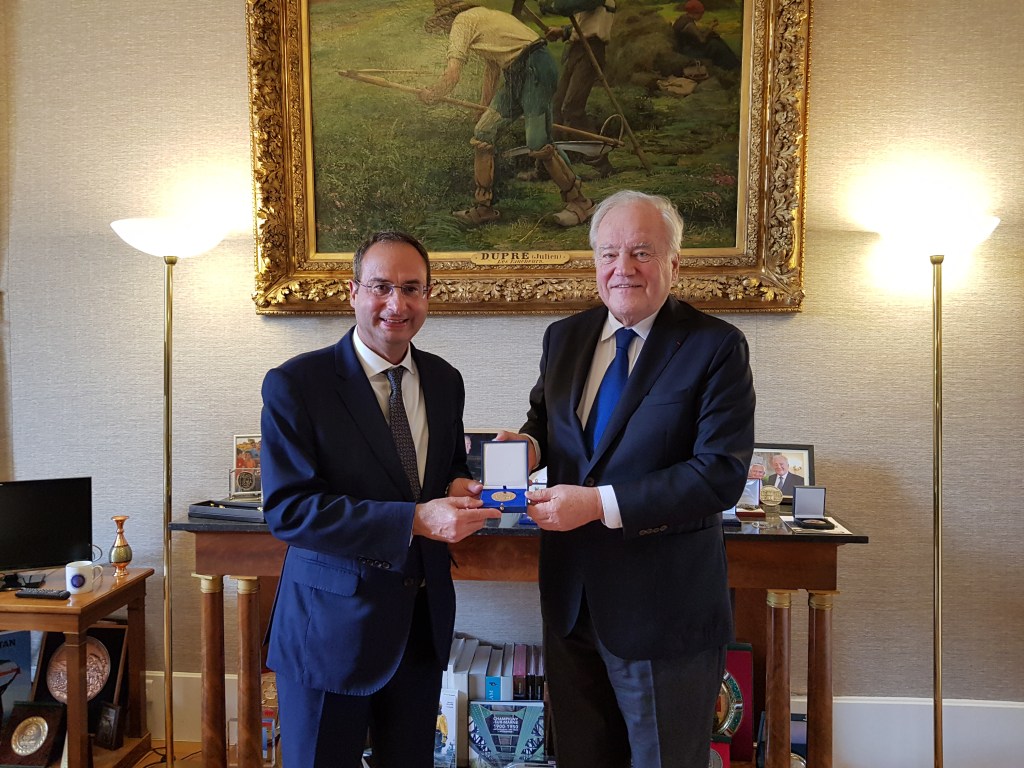 Accueil au Sénat de S.E. M. Carmelo Inguanez, Ambassadeur de Malte en France. Christian Cambon a exprimé sa solidarité amicale avec cet État au cœur de la méditerranée pour que l’Europe l’aide à faire face aux vagues migratoires.