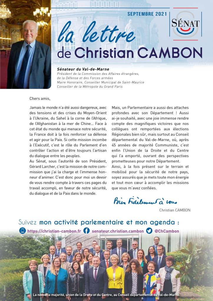 4 octobre 20217 octobre 2021 Christian Cambon Lettre d’information de septembre lettre-christian-cambon-2021-09-30-Télécharger Partager :Partager Cliquer pour envoyer un lien par e-mail à un ami(ouvre dans une nouvelle fenêtre) E-mail J’aime chargement… Sur le même thème
