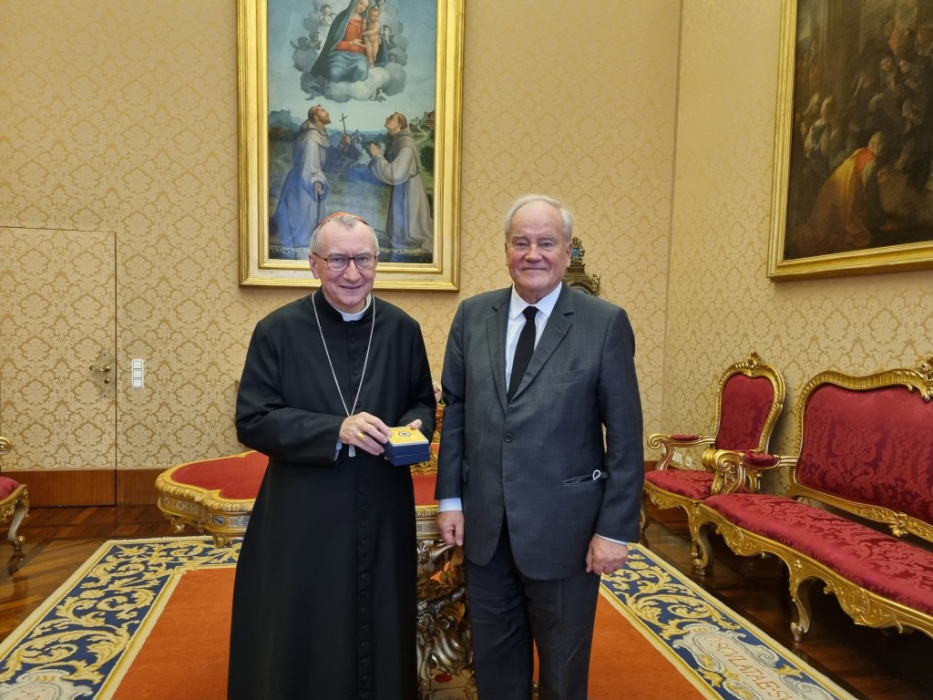 En audience privée au Vatican, Christian Cambon a eu des entretiens avec S.Exc. Mgr Gallagher, Secrétaire pour les Affaires extérieures, puis avec S.Em le Cardinal Pietro Parolin Secrétaire d’État du Pape, sur les crises nombreuses qui secouent le monde. Le Saint-Siège attend beaucoup de la France pour aider le Liban mais aussi les chrétiens d’Orient qui paient un prix très lourd pour être fidèles à leur Foi.