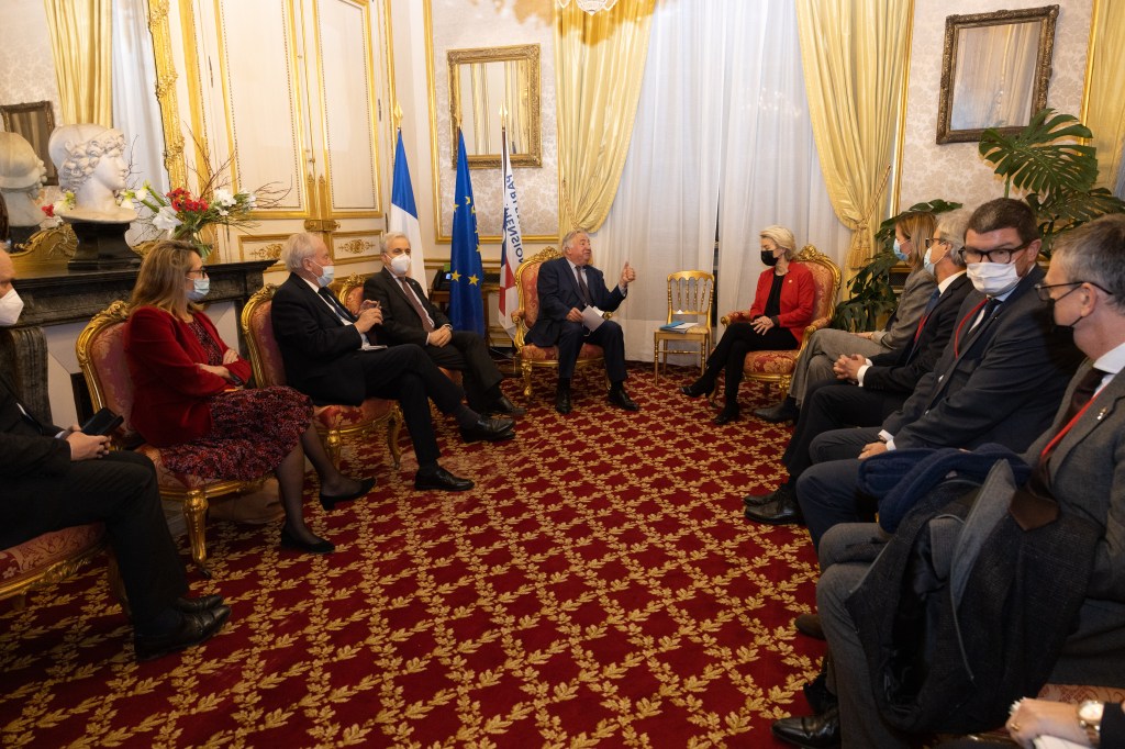 A l’occasion de la Présidence Française du Conseil l’Union Européenne (PFUE), le Président du Sénat, Gérard Larcher a reçu la Présidente de Commission européenne, Madame Ursula von der Leyn, pour une réunion avec le Collège des Commissaires européens et les Présidents des commissions du Sénat.