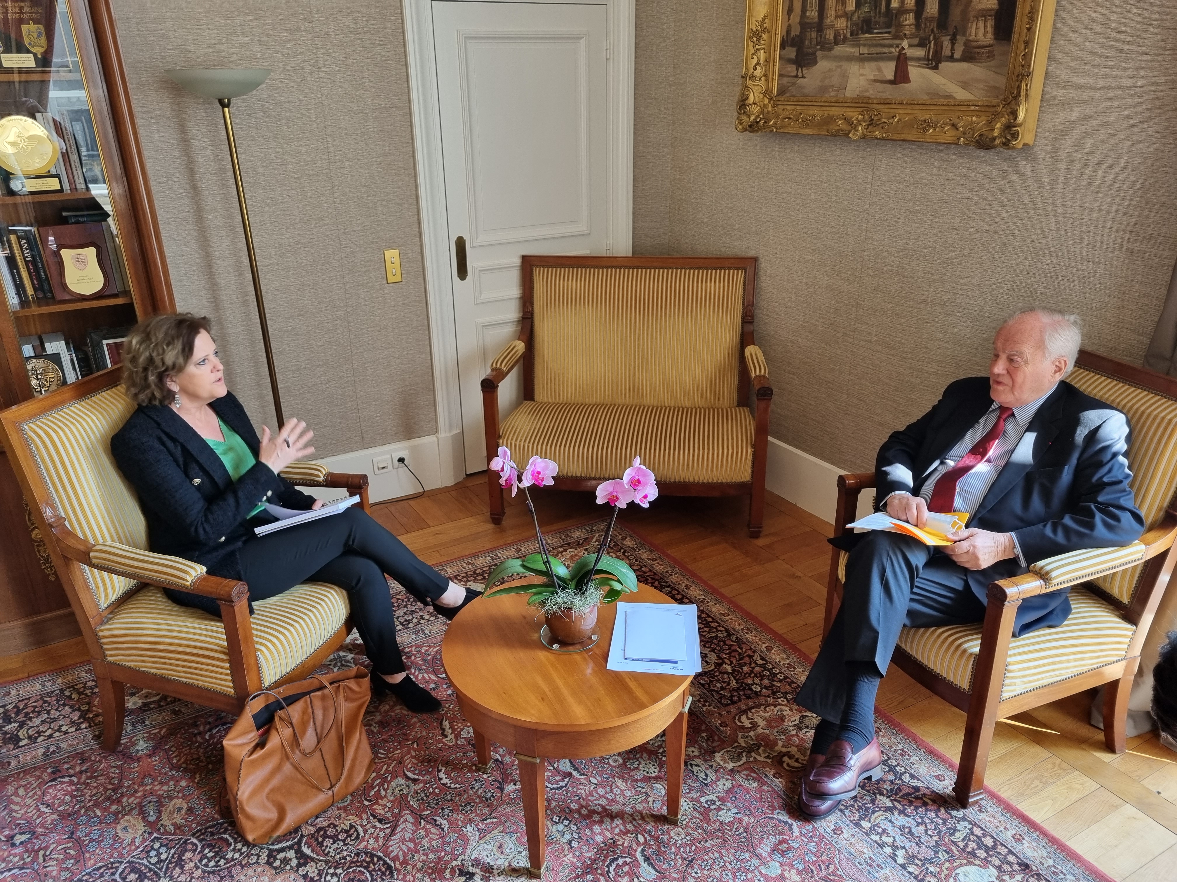 Christian Cambon a reçu S.E.Mme Menna Rawlings, Ambassadrice de Grande-Bretagne, au Sénat. « Notre priorité, renforcer la relation franco-britannique, notamment en matière de défense, face aux nouveaux risques liés aux menaces russes sur la paix en Europe. » explique le sénateur.
