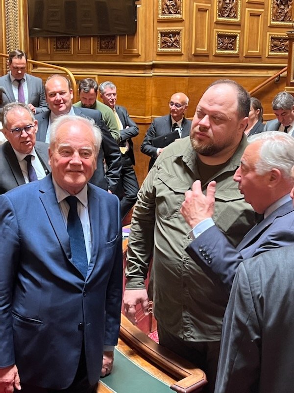 Aux côtés du Président Larcher pour un accueil solennel au Sénat de M. Stefanchuk, Président du parlement ukrainien la Rada. Un appel émouvant à maintenir le soutien de la France à l’Ukraine qui paie de son sang son désir de vivre au sein de l’UE. Lors du prochain déplacement du président Larcher à Kiev, Christian Cambon sera à ses côtés.