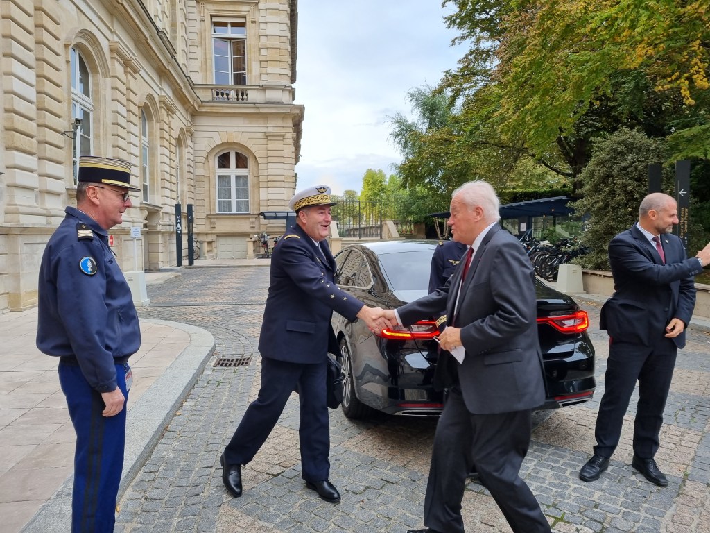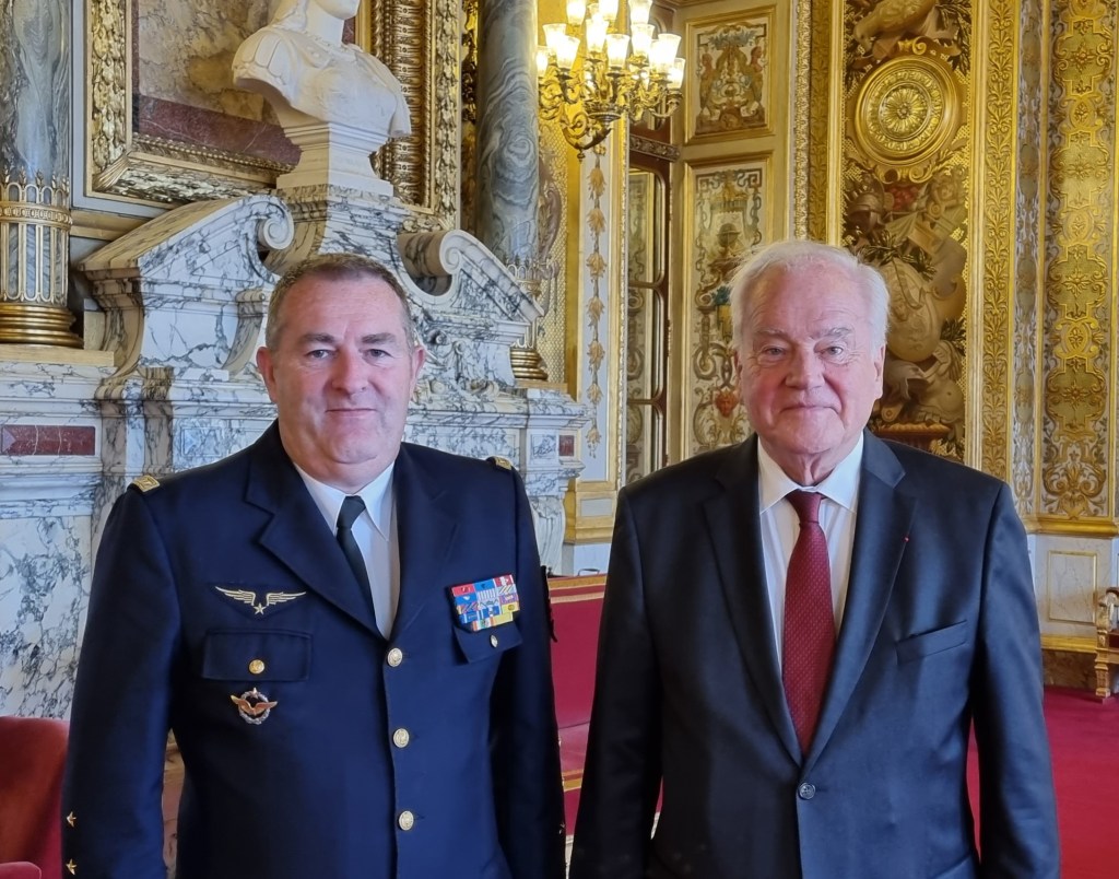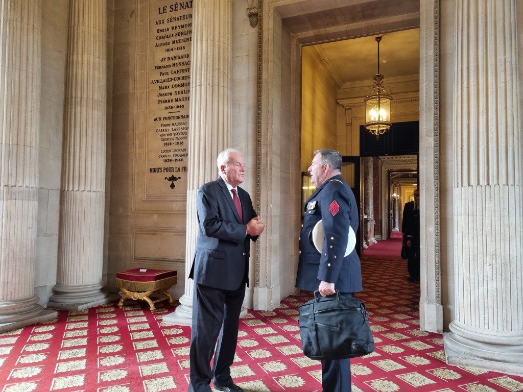 Accueil au Sénat du Général Mille, Chef d’État Major de l’Armée de l’air pour préparer l’examen du Budget qui sera présenté devant la Commission des Affaires étrangères et de la défense dans le cadre du Projet de Loi de Finances.