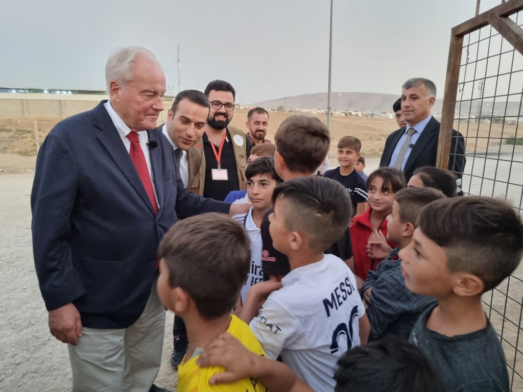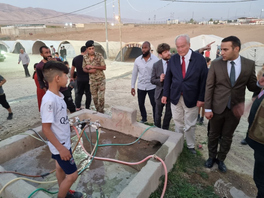 Avec Ali Dolamari, le représentant de la Région Autonome du Kurdistan à Paris et le Consul général, Olivier Decottignies à Erbil, visite du camp de Sharia où 13000 réfugiés yézidis survivent dans des conditions très précaires. La France et les ONG sont mobilisées.