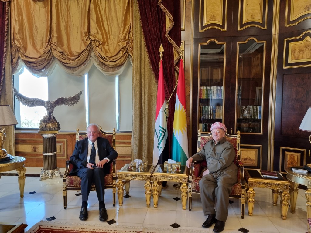 Christian Cambon a eu l’honneur d’être longuement reçu par le père de la Nation kurde, Masoud Barzani, ancien Président du Kurdistan irakien, dont la sagesse et le rayonnement lui permettent de jouer un rôle important en Irak.