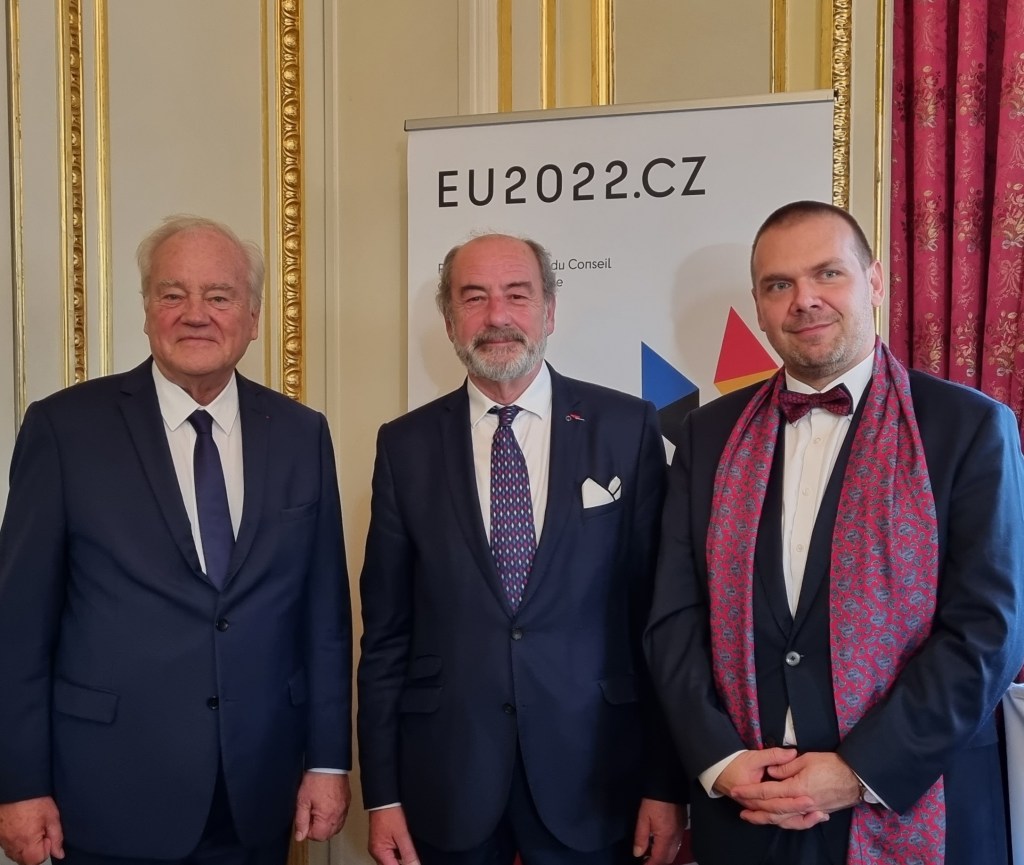 Aux côtés de S.E. M. Michal FLEISCHMANN, Ambassadeur de la République tchèque et de M. Martin BAXA ministre de la culture de la République tchèque, à l’Ambassade de Tchéquie pour la Fête nationale de Tchéquie