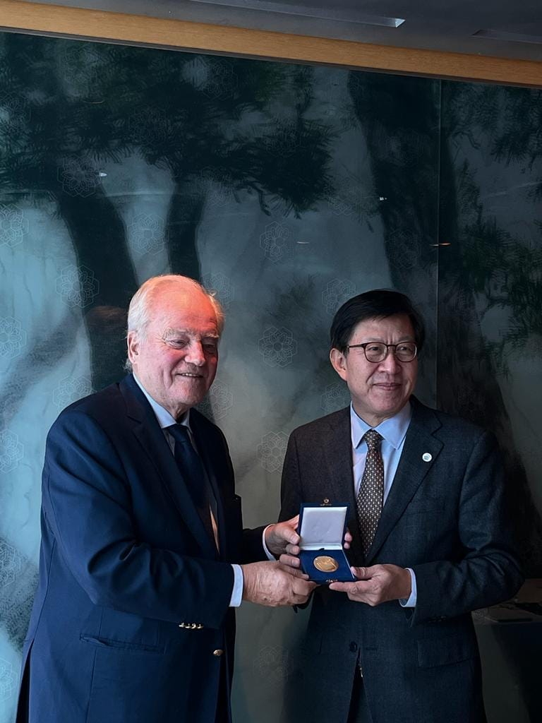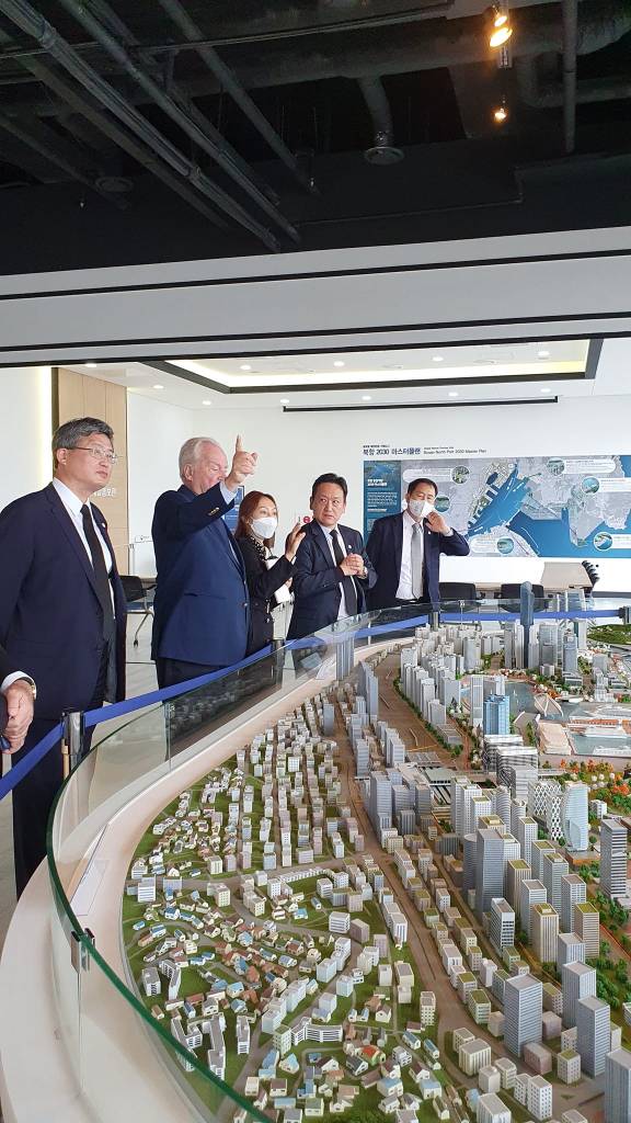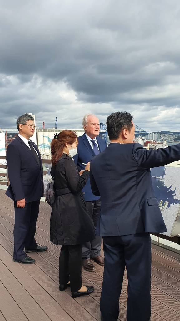 Échange avec le Maire de Pusan , métropole de 7 millions d’habitants , candidate pour l Exposition Universelle 2030. 2eme plus grand port containers du Monde, Pusan porte un projet magnifique. Elle bénéficie de bien meilleurs atouts pour être choisie, (environnement,nouvelles technologies,respect de nos Valeurs…), plutôt que sa concurrente Riyadh, étonnamment soutenue par la France…