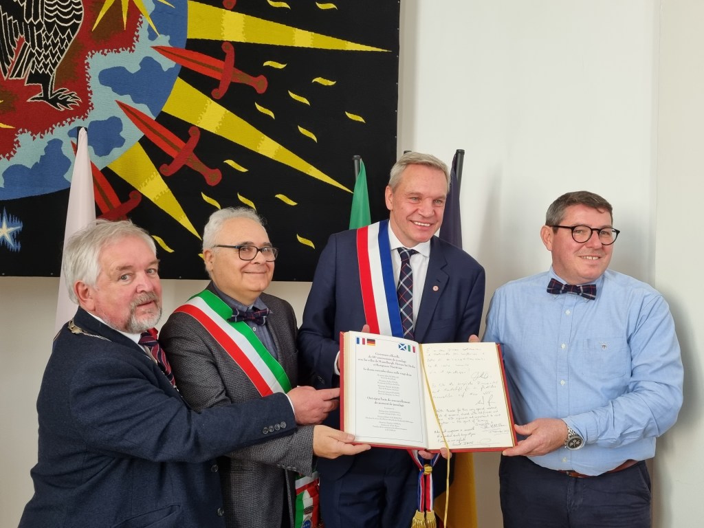 A l’invitation de Laurent Jeanne, Maire de Champigny-sur-Marne, et son équipe Municipale pour célébrer le 60ème anniversaire de 3 jumelages (Ecosse Allemagne, Italie) l’occasion de construire dans l’amitié et les échanges, l’Europe des peuples et des Nations.