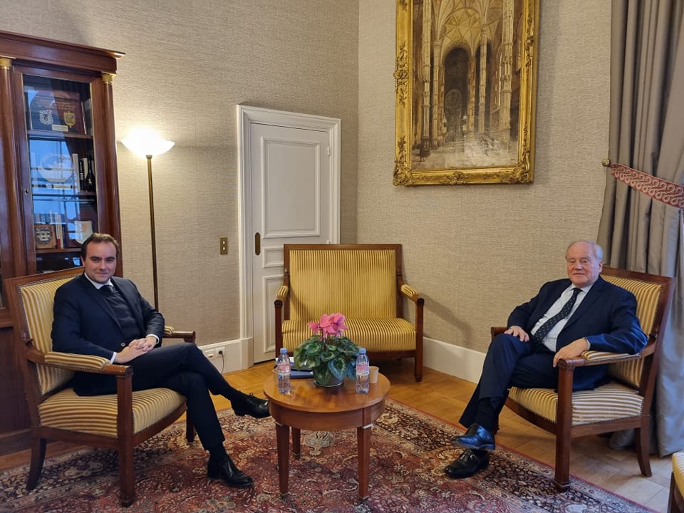 Christian Cambon a reçu Sébastien Lecornu, Ministre des Armées, dans mon bureau au Sénat, pour évoquer la future Loi de Programmation Militaire. En ces temps d’insécurité, liée à la guerre en Ukraine, cette Loi va accroître les moyens de nos Armées pour mieux protéger les Français. Il a remercié le Ministre pour sa courtoisie républicaine !