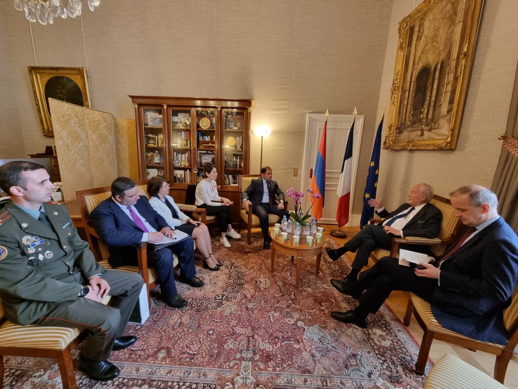 Christian Cambon a reçu au Sénat le Ministre de la Défense d’Arménie, M. Suren Papikyan. Il lui a précisé que la France soutenait les pourparlers de paix qui ont démarré avec l’Azerbaïdjan et qu’elle devait aider l’Arménie à se défendre et à se protéger.