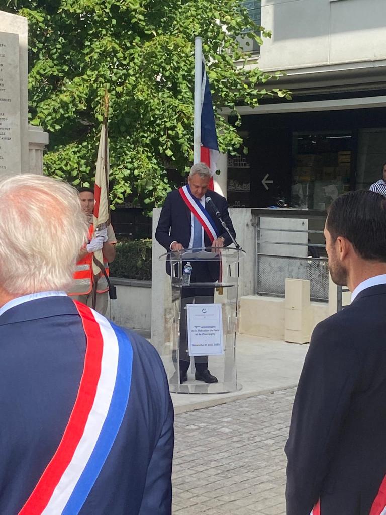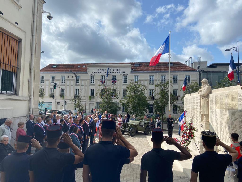 Christian Cambon était présent aux célébrations du 79eme anniversaire de la Libération de Paris et de sa banlieue, à Bry sur Marne avec le Maire Charles Aslangul et son équipe municipale, et à Champigny avec le Maire Laurent Jeanne et ses Élus devant le Monument aux Morts rénové et transféré face à la Mairie. « Ne jamais oublier le sacrifice de ces combattants et résistants qui ont mis fin à 5 ans de souffrances et d’occupation.Ils nous ont rendu la Liberté. S’en souvenir, toujours ! » a rappelé le sénateur.
