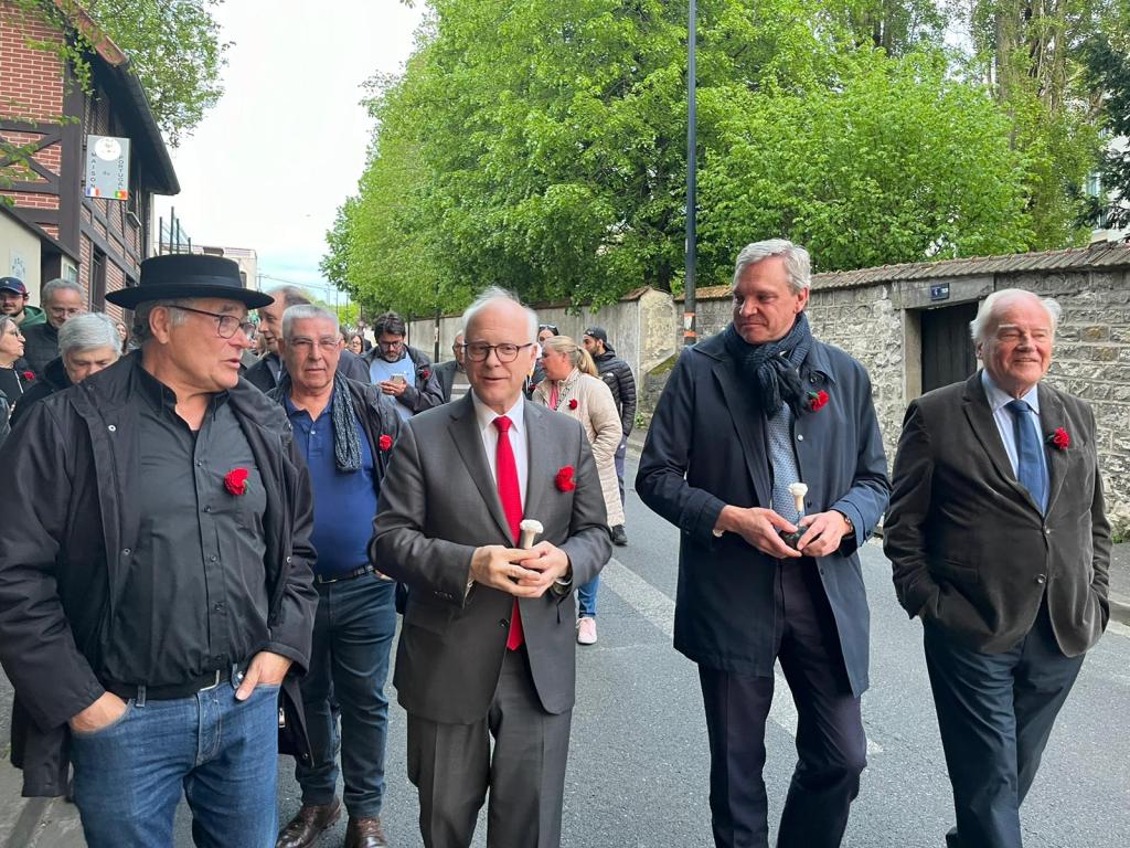 A Champigny-sur-Marne avec le Maire Laurent JEANNE, S.E.M. l’Ambassadeur José Augusto DUARTE et le Consul général du Portugal à Paris, pour célébrer le 50ème anniversaire de la Révolution des œillets, lorsque la Démocratie a vaincu la dictature qui dominait le pays depuis 33 ans. Champigny-sur-Marne fut la 1ère terre d’accueil en Ile-de-France des Portugais qui voulaient fuir cette tyrannie. Émouvant discours de l’Ambassadeur qui a rappelé l’intégration réussie des portugais en France grâce à leur travail. Christian Cambon a remercié le Maire et les associations pour cette belle cérémonie.