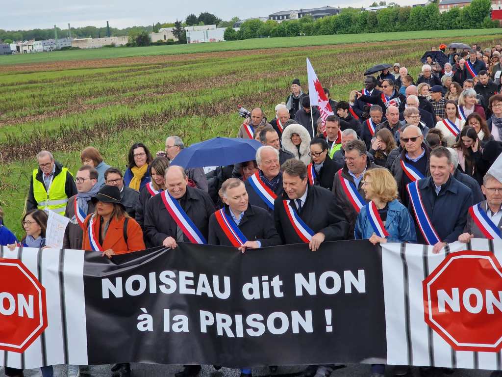Près de 1.000 manifestants sous la pluie pour dire une fois de plus NON au projet de prison à Noiseau. Unanimité de tous les courants politiques du Val-de-Marne pour sauver les derniers terres agricoles du Département,et dénoncer la folie d’un projet absurde.