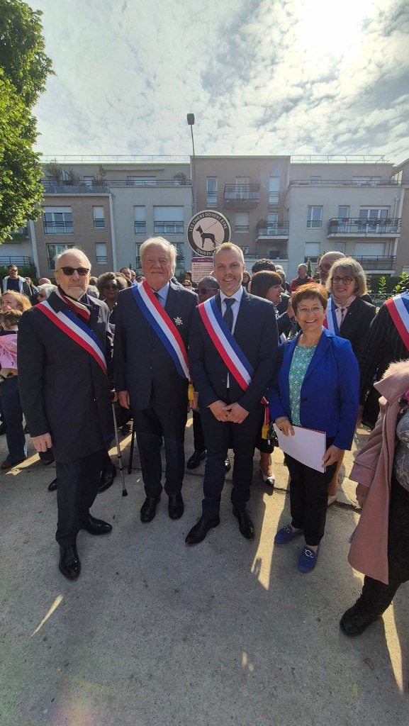 ● à l’Haÿ-les-Roses avec le Maire Clément Decrouy et Vincent Jeanbrun , Député de la Circonscription.L’occasion de célébrer la 2ème DB en présence d’un de ses vétérans, Serge Finot ,100 ans cette année…