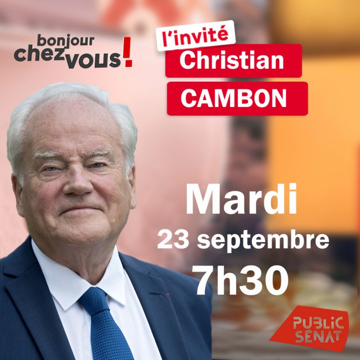 23 septembre 202510 décembre 2025 Christian Cambon En direct sur Public Sénat : mardi 23 septembre à 7h30 Partager :Partager Cliquer pour envoyer un lien par e-mail à un ami(ouvre dans une nouvelle fenêtre) E-mail J’aime chargement… Sur le même thème