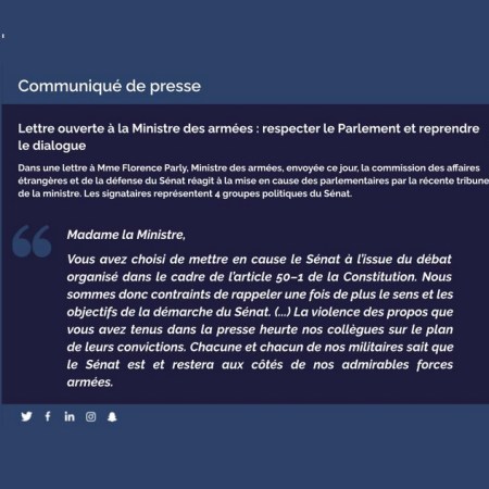 Lettre ouverte à la Ministre des armées : respecter le Parlement et reprendre le dialogue